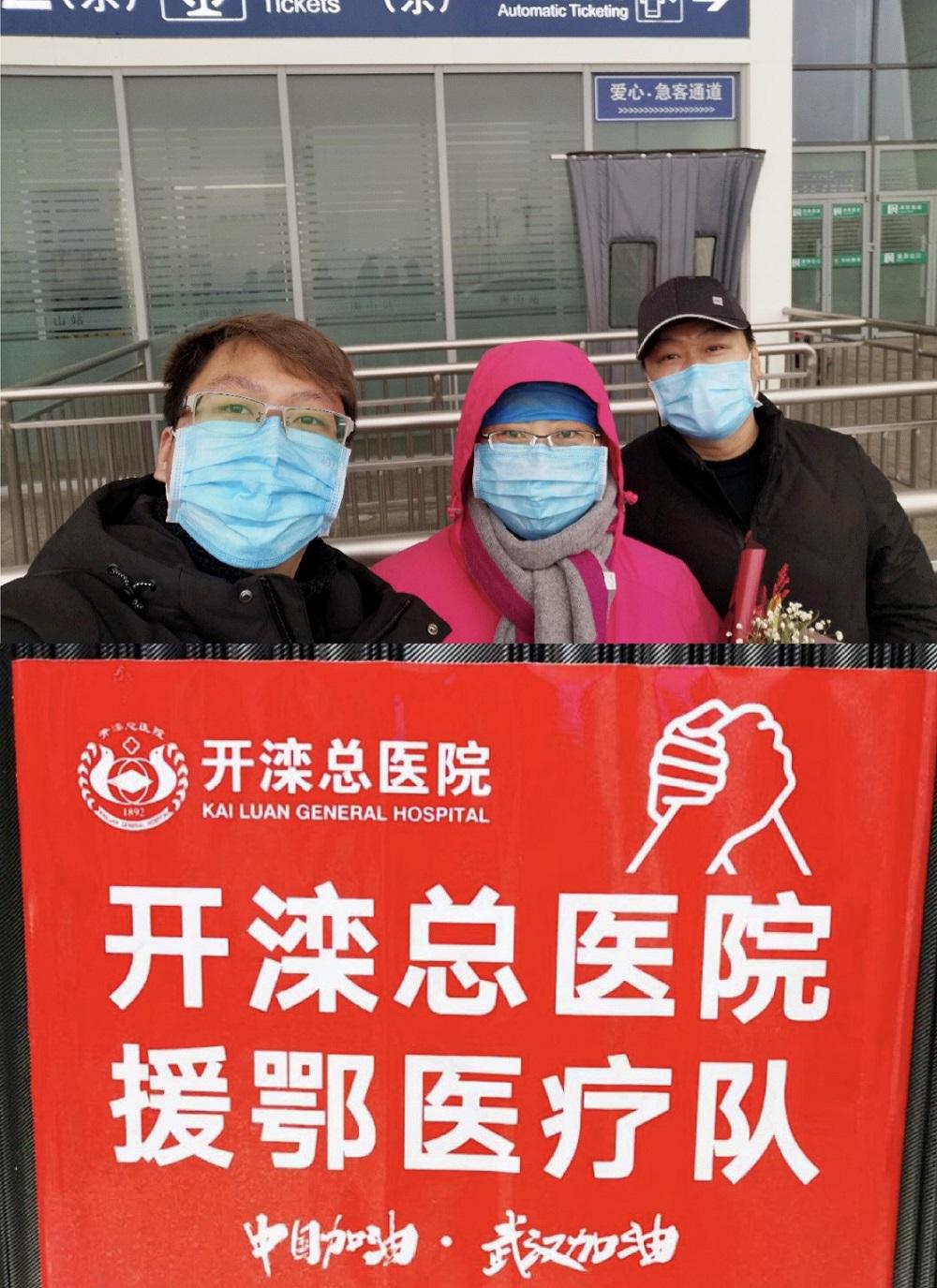 信息与计算机工程学院2019级电子信息类专业安泽阳同学(左一)的母亲参加援鄂医疗队