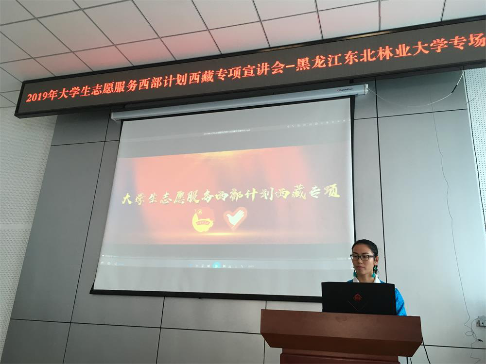 西藏专项宣讲团由团那曲市委副书记何晓娟担任团长,一行7人,于4月10日10时与我校140余名同学就西部计划西藏专项的有关情况进行了交流分享。宣讲会在大学生志愿服务西部计划西藏专项专题宣传片的播放中拉开帷幕,让同学们不仅了解了风光旖旎的神秘西藏,更了解了西部计划志愿者志愿服务的饱满热情与精神风貌。随后,5位志愿者们讲述了他们在志愿服务西部过程中的经验和感悟,并详细向介绍了服务地的自然风光、风土人情以及志愿者所享受的待遇,打破了以往同学们对西藏贫穷落后的印象。在提问环节,现场同学提出了专业和岗位分配的关系、招募具体环节等问题,宣讲团成员结合自身经历给予了解答。