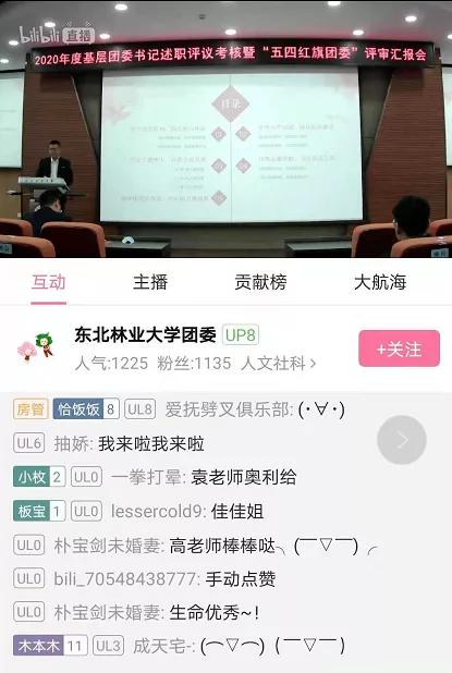 4月14日上午,我校2020年度基层团委书记述职评议考核暨2020年度“五四红旗团委”评审汇报会在奥林学院101室举行,会议通过“东林团委”官方哔哩哔哩平台同步直播,学校相关职能部门负责人、各学院党委副书记兼副院长通过线上方式参与评审,校团委专职团干部、青年教师代表、团员代表等七十余位师生在现场参与评审,千余名师生观看了会议直播。