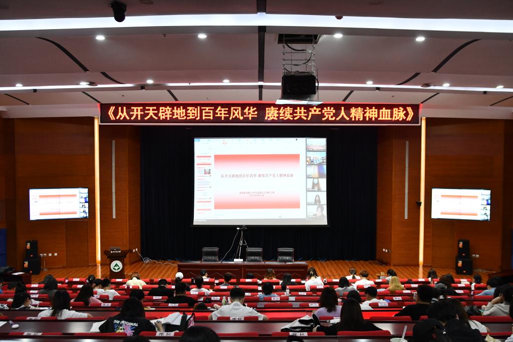 6月10日下午,国史专家、南京航空航天大学马克思主义学院院长王智教授通过线上授课,为我校青年师生做题为“从开天辟地到百年风华 赓续共产党人精神血脉”的国史教育专题授课。我校第43期团校暨第13期“青马班”全体学员在成栋楼4楼会议厅聆听报告。