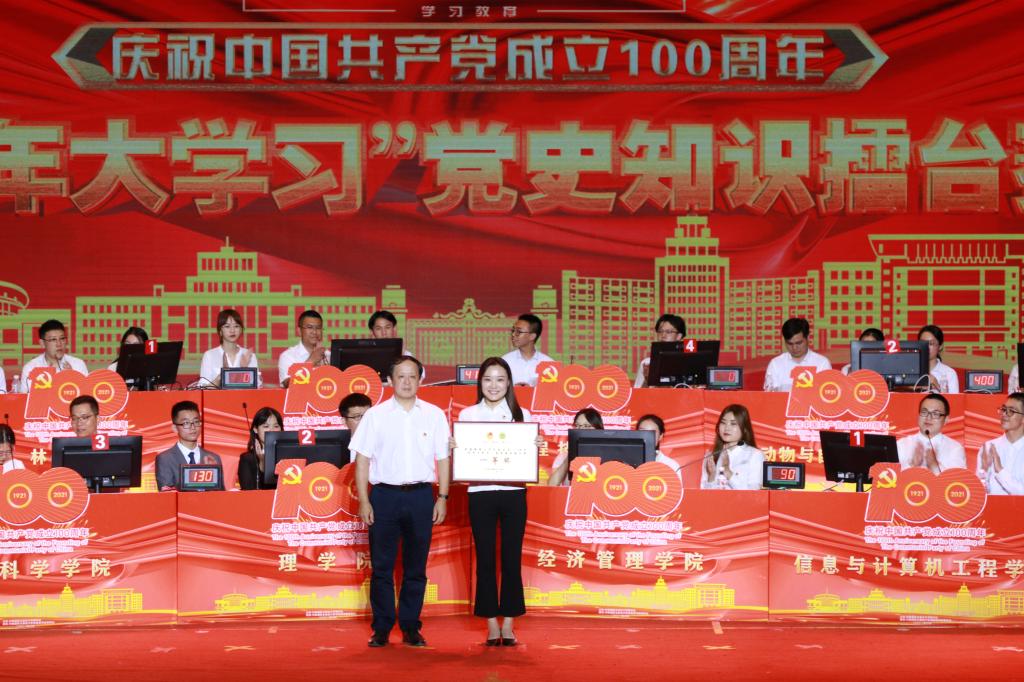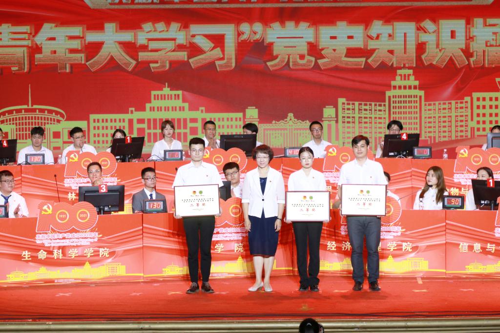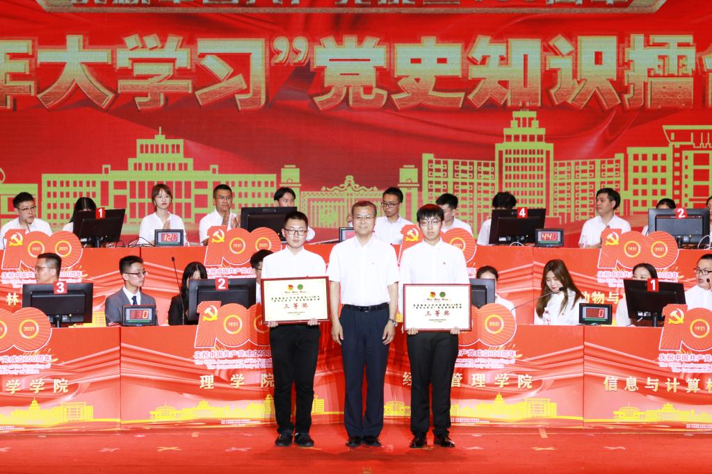 6月24日晚,庆祝中国共产党成立100周年“青年大学习”党史知识擂台赛在科学会堂隆重举行。学校党委书记张志坤,党委常委、副校长李顺龙,党委副书记陈文慧,党委常委、副校长雒文虎,党委常委、副校长翟雪峰出席活动。信息与计算机工程学院代表队获得一等奖。