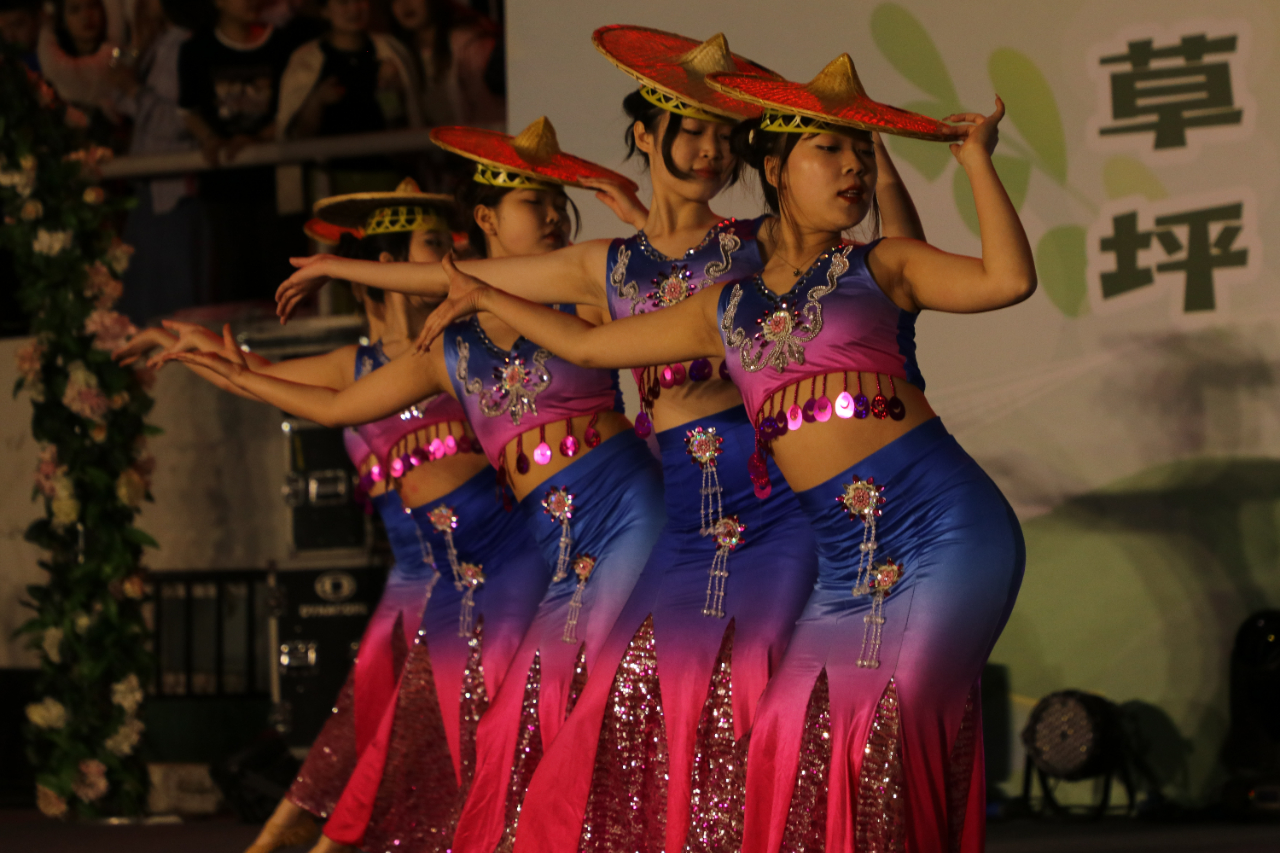 大学生艺术团舞蹈团带来了独具民族特色的傣族舞《椿》;在活力满满、韵律跃动的西洋乐《大家一起喜羊羊》后,震撼登场的街舞串烧将整场草坪音乐会的气氛推到了高潮。