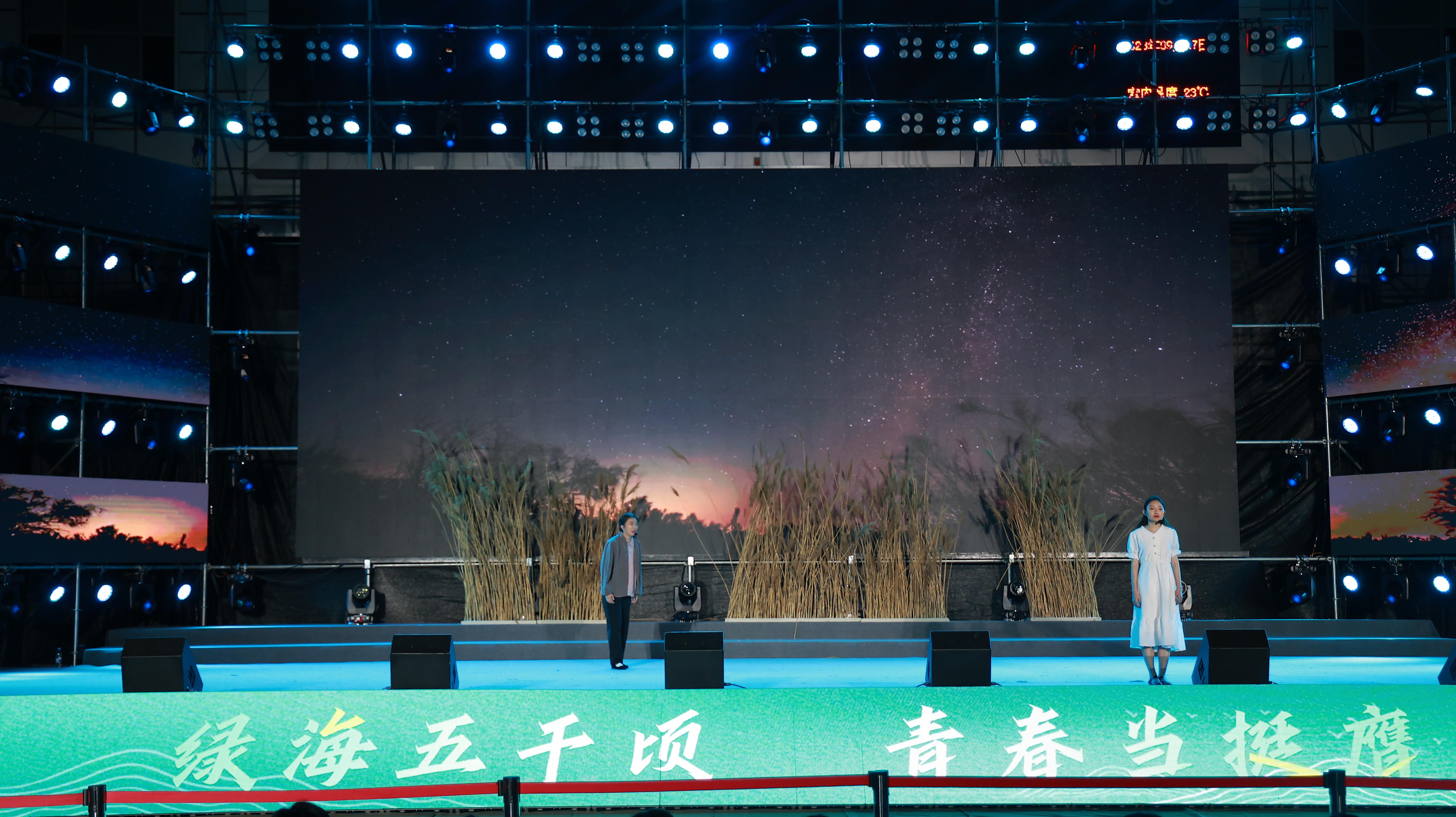 晚会接近尾声时,因校外供电设备高压闪动,导致舞台区域的屏幕和音响停止工作,现场师生高声歌唱《前进,东北林业大学》。故障解除恢复供电后,晚会通过线上直播的形式,完成了后续节目的表演。