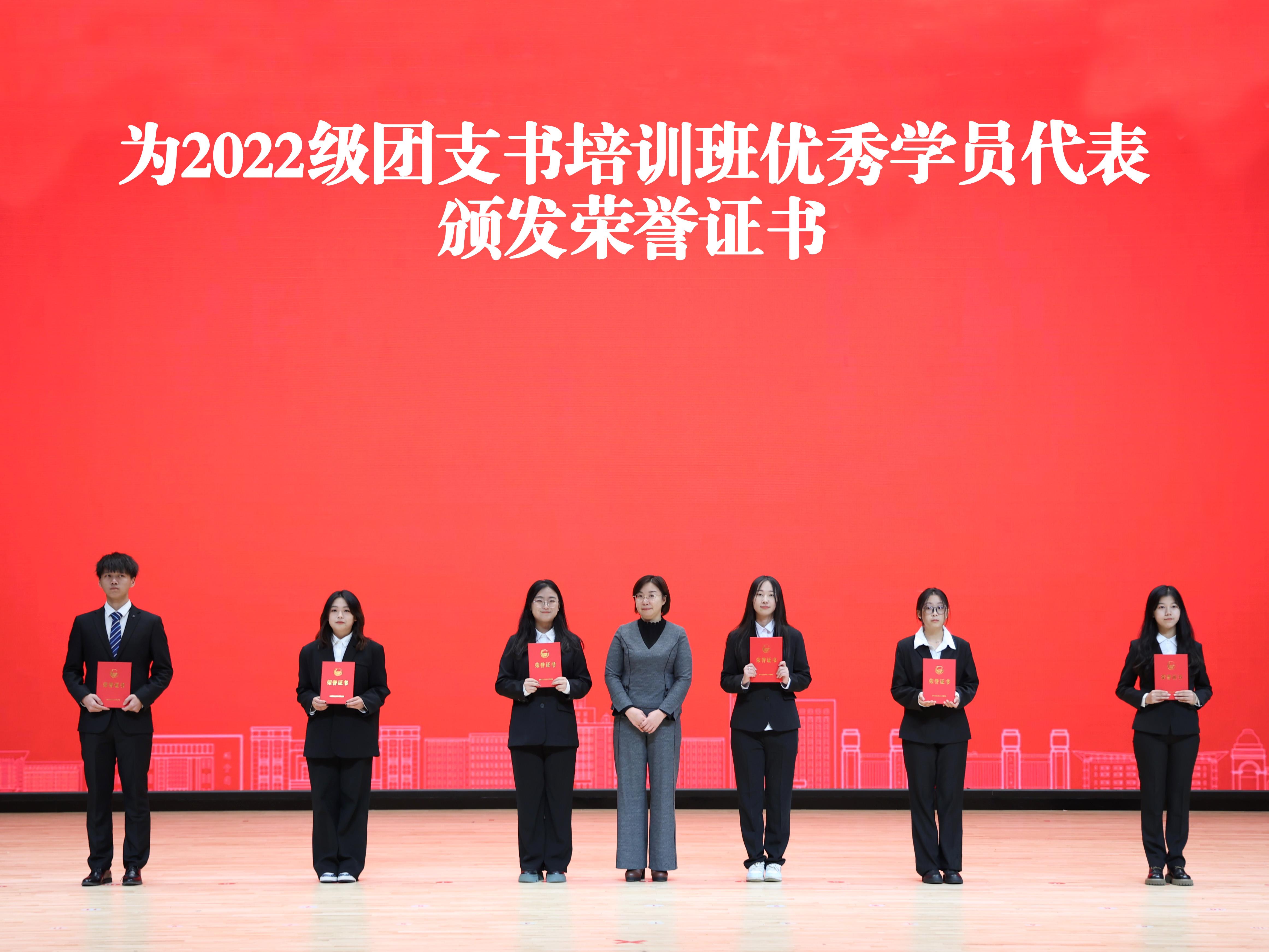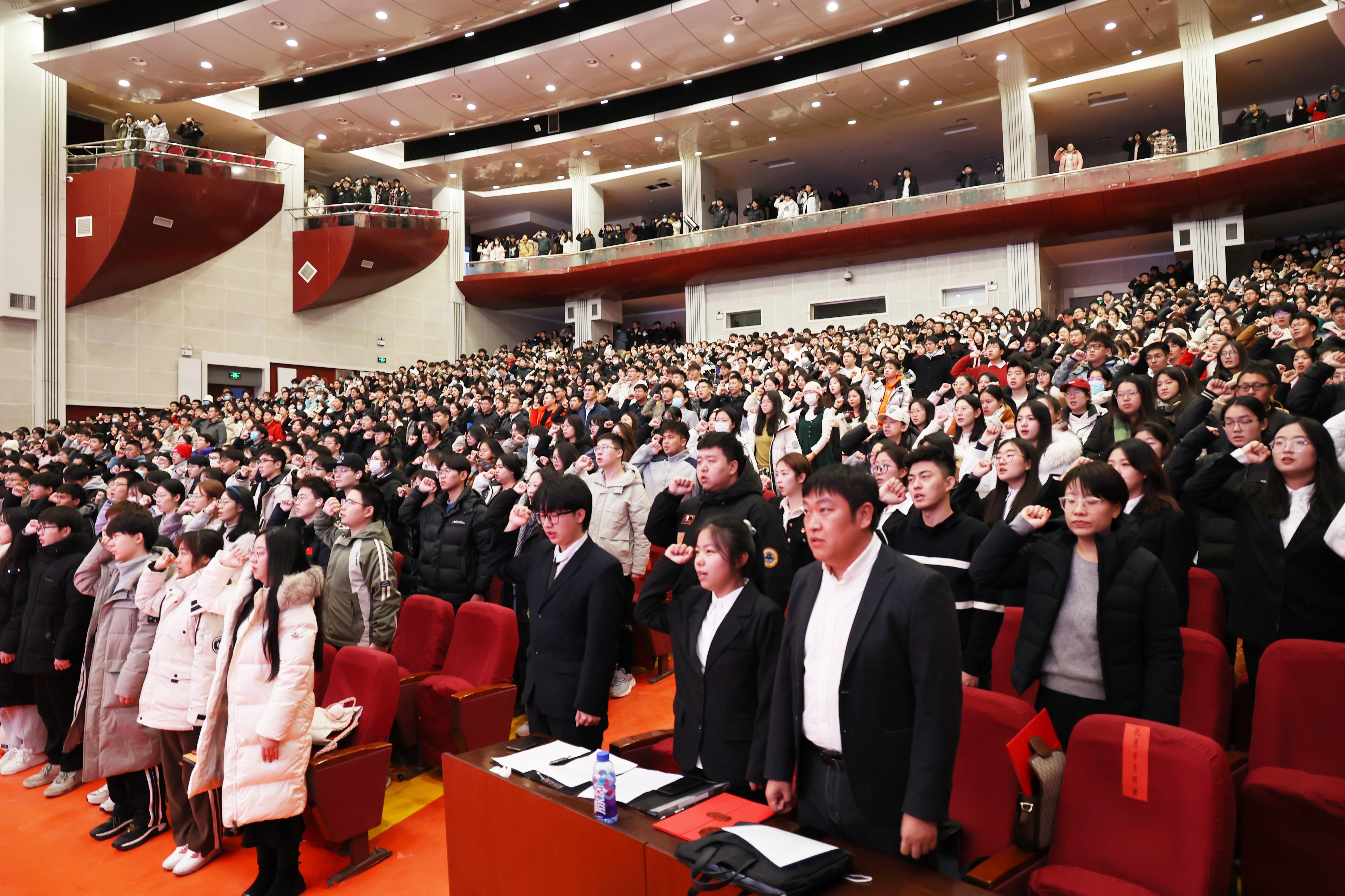 报告开始前,现场举行了2023年秋季学期团校开班式。仪式上对第十五期“青马工程”培训班、2022级团支书培训班优秀学员进行了表彰,公布了《2023年秋季学期团校学员、班主任名单和管理规定》。第十五期“青马工程”培训班优秀学员代表、2023年秋季学期团校学员代表分别发言;全体学员集体重温了入团誓词。