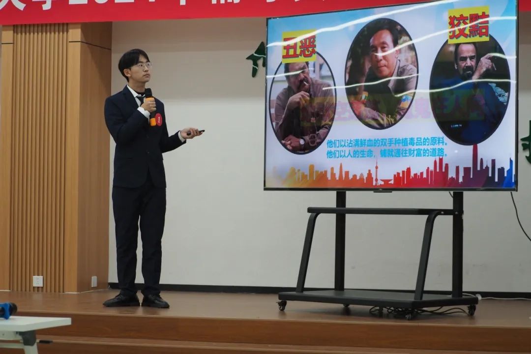 “虎门销烟千秋颂,林公浩气万物存”“中国人对烟毒之烈是有着切肤之痛的”“珍爱生命,远离毒品”……决赛现场,选手们攥紧的双拳是对毒品的痛恨,激昂的声音是对禁毒者的崇敬,惋惜的目光是对“瘾君子”的悲叹。他们通过生动的故事、感人的实例,从不同维度、不同层面深刻揭示了禁毒的紧迫性与重要性,彰显了我国对禁毒工作的坚定决心和不懈努力。最终,马克思主义学院刘志辉作品《让禁毒之风弘扬,让生命之花绽放》斩获一等奖。