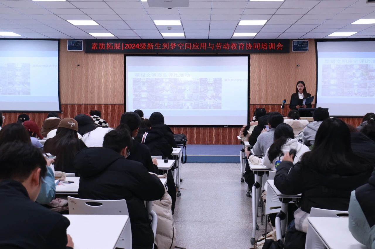为推进学校“第二课堂”活动开展、加强劳动教育建设,让新生更好地了解并使用“到梦空间”软件,素质拓展中心于11月23日下午在奥林楼001教室面向全校2024级新生开展了“到梦空间应用与劳动教育协同培训会”。共有100余名团支书和班级代表参与了培训。