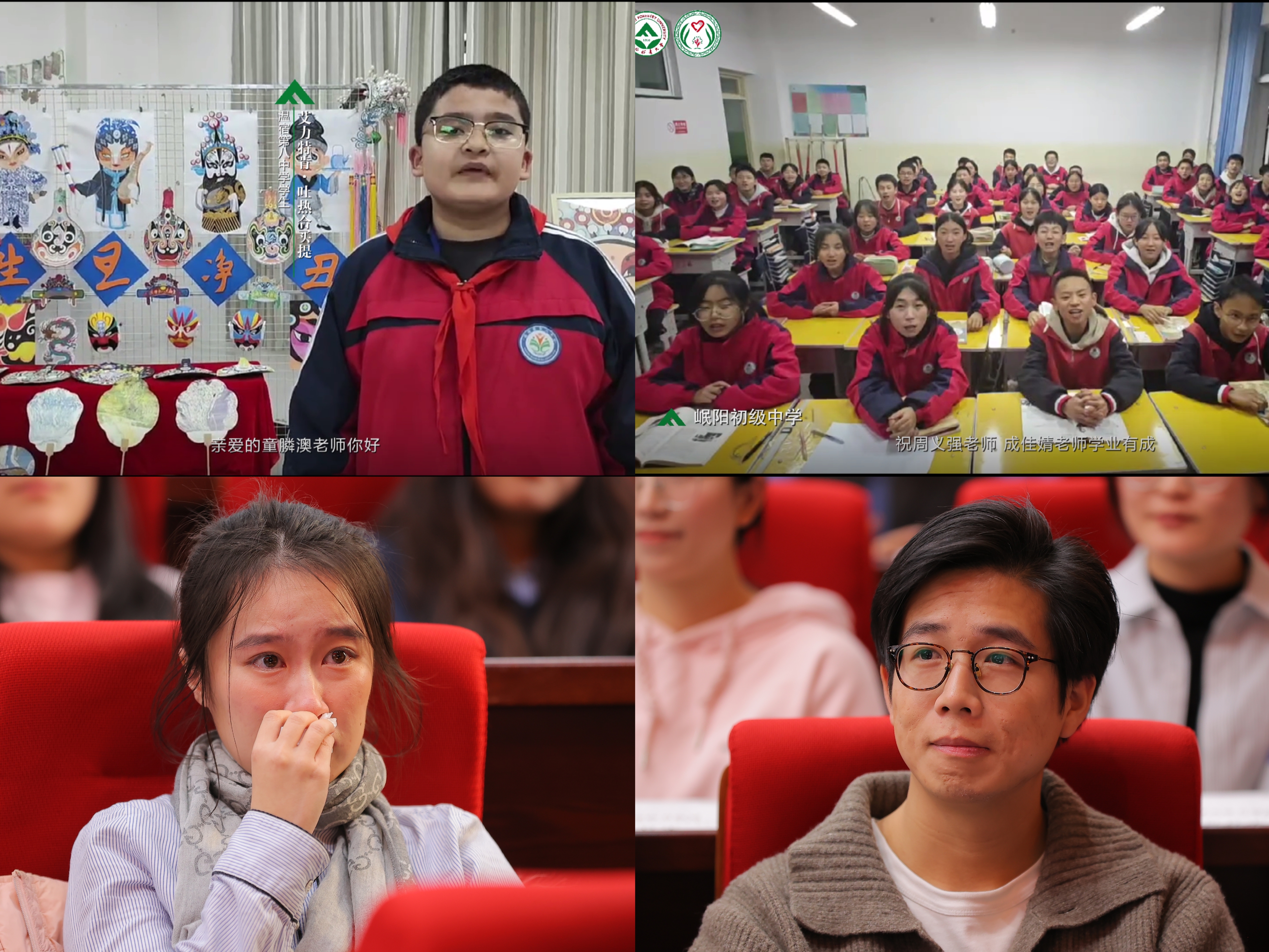 “老师,你什么时候回来?”“老师,我想你了!”……在研支团服务学校师生的寄语视频中,一声声亲情问候,一幕幕熟悉场景,让在场师生潸然泪下。