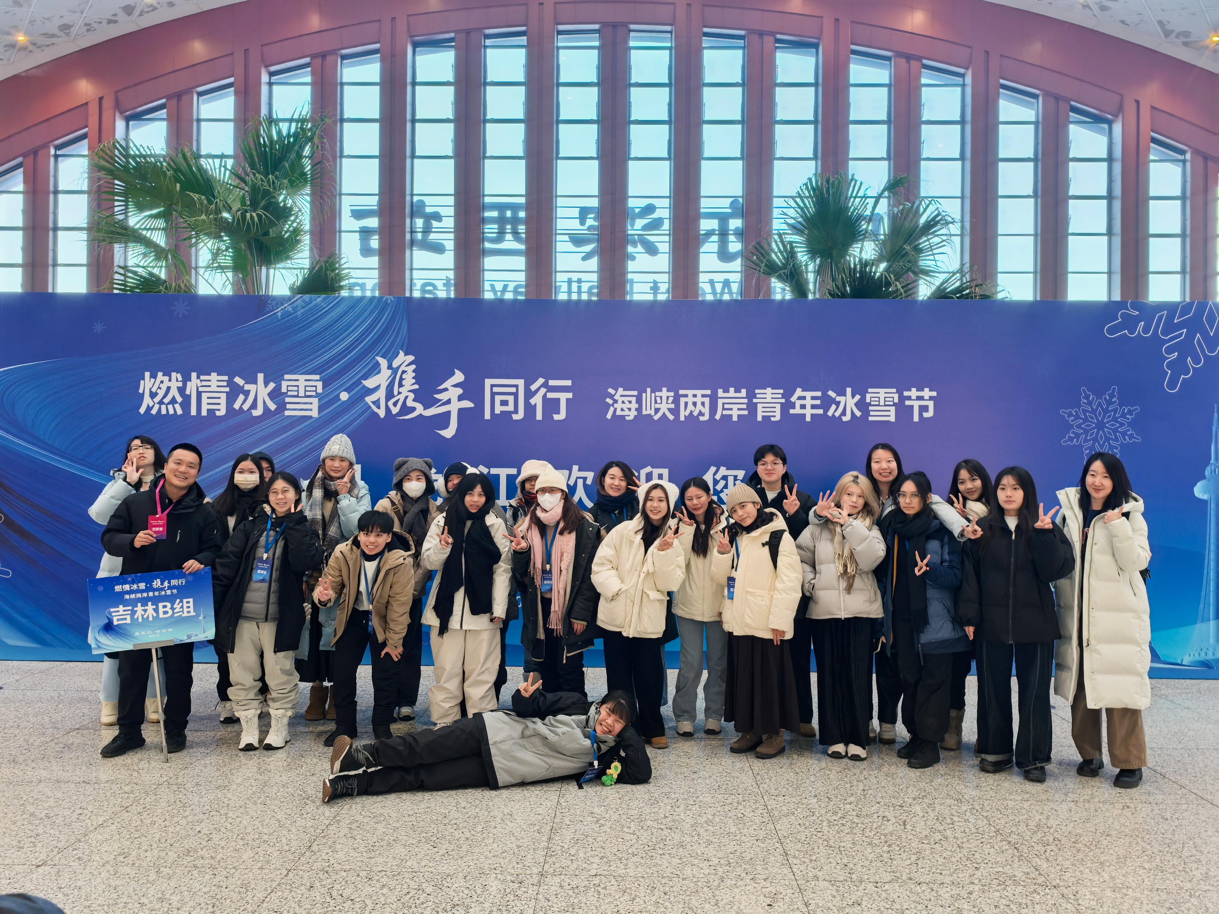 活动期间,我校主要负责广东、江苏、吉林、黑龙江等4个省份近400名台湾青年代表的接待、引导等保障工作。5名教师与台湾青年携手同行,一起参加第九届亚洲冬季运动会场馆巡礼、冰雪体验、参访交流、青年联谊等多项活动,共同抒发两岸青年对祖国的美好祝愿和对两岸未来的美好憧憬。在行进的大巴车上,管峰发挥专业优势,化身“车载导游”,带领台湾青年唱响爱国之音,表达两岸深情;王振越在佳木斯敖其镇赫哲文化艺术中心与青年学生体验非遗文化和冰雪活动;翟荣升精心布置报到处,与入住青年热情互动,传递来到尔滨的“第一份温暖”。
