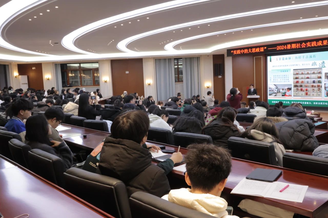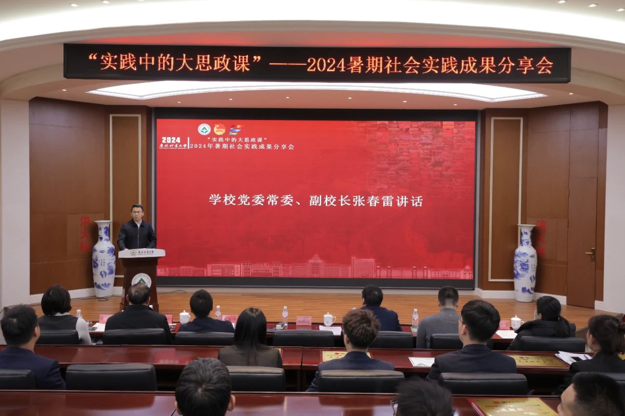 为深入学习贯彻习近平新时代中国特色社会主义思想,全面贯彻落实党的二十届三中全会精神和习近平总书记在全国教育大会上的重要讲话精神,推动“思政小课堂”同“社会大课堂”深度结合,共建“大思政”体系,12月27日下午,学校2024年暑期社会实践成果分享会在动保国际会议厅举行。学校党委常委、副校长张春雷,学校相关职能部门负责人,全校专兼挂职团干部与200余名青年师生一起同上一堂“大思政课”,推动思想铸魂与实践育人有机结合,有力推进“一二课堂”同向同行,让青春脉搏与新时代发展同频共振。