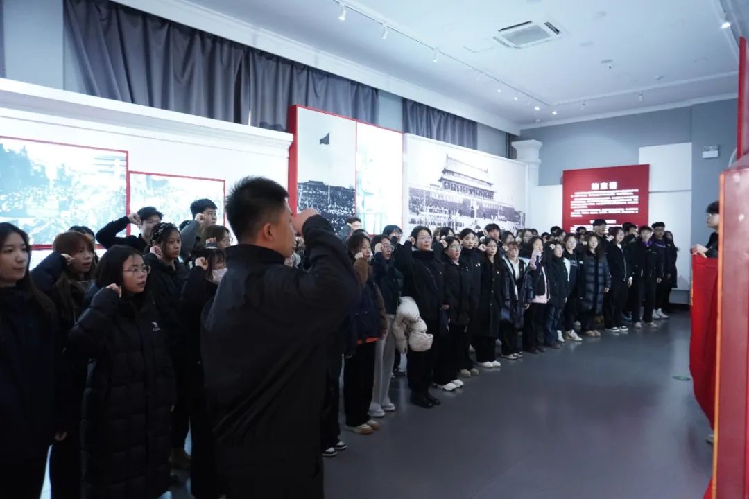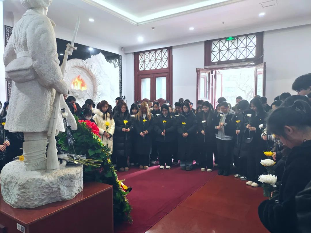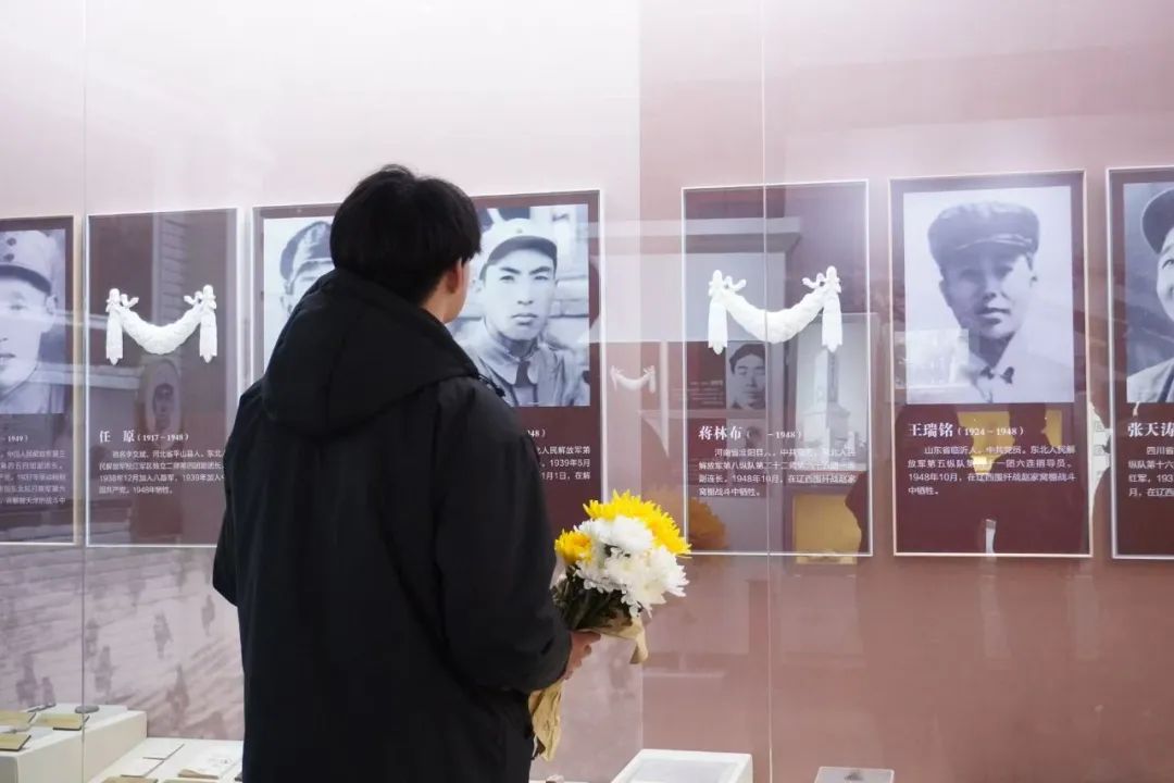 右拳紧握,齐声宣誓,矢志接续先辈伟大遗志,“我志愿加入中国共产主义青年团……为共产主义事业而奋斗!”铿锵誓言与馆内《红旗颂》的旋律交织,全场肃立,垂首默哀,历史回响在心头激荡,手捧鲜花,虔诚庄重,以花束告慰英烈忠魂。