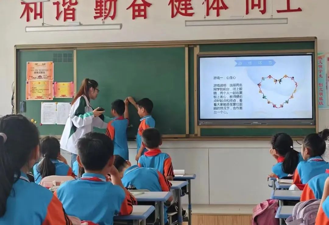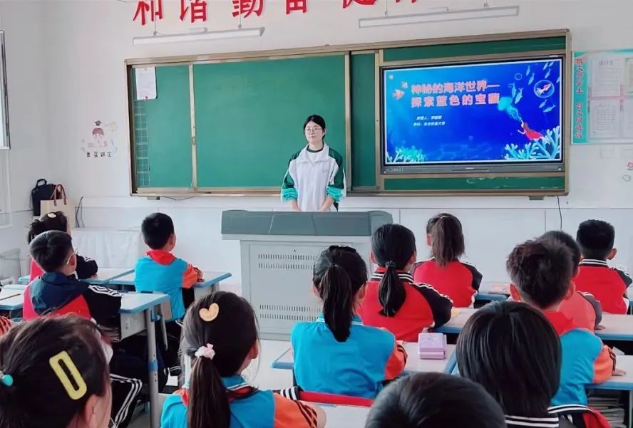 31名志愿者纷纷走上讲台,围绕红色基因传承、素质拓展教育、冰雪文化普及、生态文明教育、理想信念教育等五个主题展开教学,以音乐、美术、体育、手工等丰富多彩的课堂形式,趣味分享“冰雪逐梦 冠军之城”“强国必须强军 军强才能国安”“我的中国梦——我们不止于此”“生活中的环保问题”“一个‘绿色奇迹’的故事”等课程。实习期间志愿者们共计授课64节,惠及学生超6100人次。志愿者们在创新教学的同时,坚持“先当学生,再当老师”的成长理念,深入当地教师课堂听课总计210余课时,系统学习老教师的成熟授课经验。课余时间,志愿者们积极地与同学们互动交流,一起唱歌,一起打球,一起做手工,一起分享快乐……他们在课堂内外搭建心灵桥梁,守护学生成长。