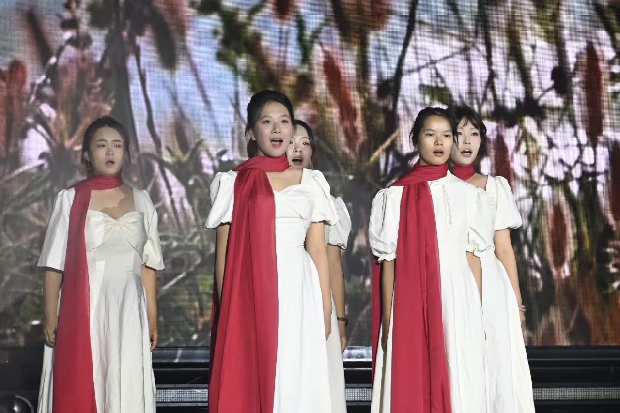 当《青苹果乐园》的轻快节奏响起,当《等你下课》的青春故事上演,当《流浪地球》的科幻史诗唱响,当《千山万水》的壮阔情怀铺展,当《哈尔滨我家乡》的深情告白回荡——每一首歌都是一段时光的注脚,每一种旋律都是一种情感的共鸣。由大学生艺术团舞蹈团、小节目队带来的歌曲联唱引发全场共鸣,掌声不断。