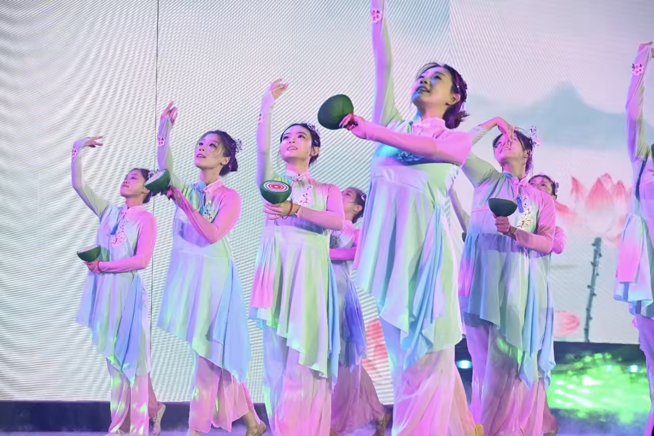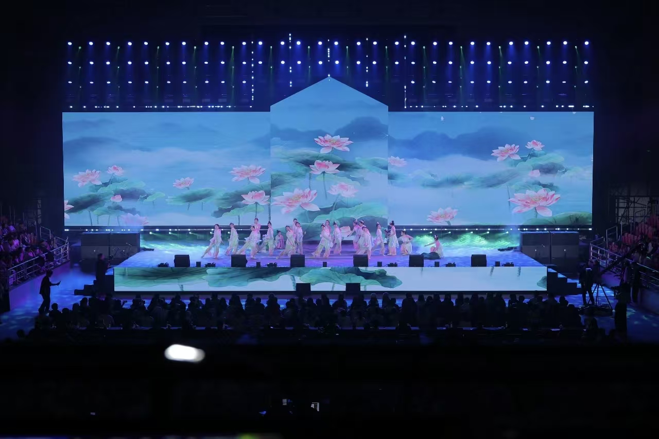 莲,出淤泥而不染;鼓,击长空而声震。随后,大学生艺术团舞蹈团带来的群舞《莲鼓月歌行》以莲之清韵、鼓之铿锵,展现古典与现代融合的东方美学,以灵动身姿带我们走入那个月下鼓鸣的唯美意境。