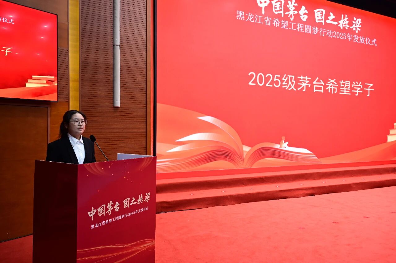 11月19日下午,在习近平总书记对希望工程重要寄语发表6周年之际,“中国茅台·国之栋梁”黑龙江省希望工程圆梦行动2025年发放仪式在学校成栋楼四楼会议厅举行。团黑龙江省委副书记张涛、学校党委常委、副校长张春雷、贵州茅台黑龙江省区副总经理李小弟、贵州茅台黑龙江经销商联谊会会长杨东辉,省希望工程捐助中心、省青基会相关负责人、多所高校代表与受助学子齐聚一堂,共赴一场温暖与希望交织的青春之约。