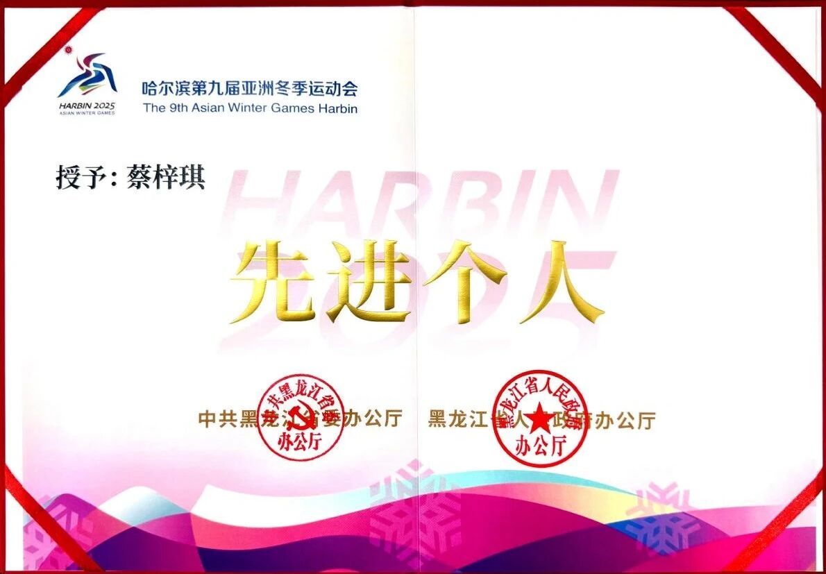 近日,在学习雷锋纪念日到来之际,哈尔滨第九届亚冬会志愿服务总结表彰工作圆满落幕。国家体育总局、中共黑龙江省委、黑龙江省人民政府授予学校团委“先进集体”称号,中共黑龙江省委办公厅、黑龙江省人民政府办公厅授予文法学院本科生、开闭幕式引导员蔡梓琪“先进个人”称号,中共哈尔滨市委、哈尔滨市人民政府授予外国语学院硕士研究生、华旗饭店住宿服务领域志愿者组长张婧“先进个人”称号。