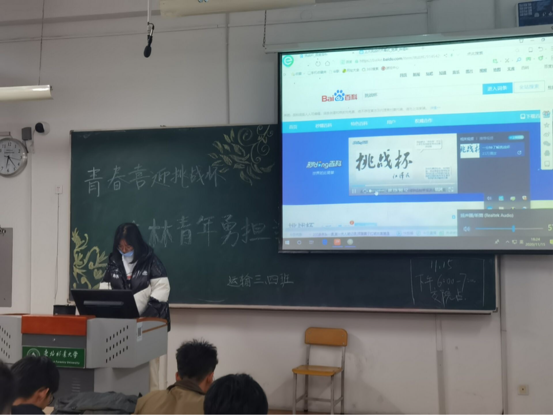 此次团日活动以各班团支部为单位分别开展,19级、20级20个团支部全部参与其中,参与率达100%。各班级团支部书记精心准备,巧妙设计活动环节,通过视频介绍、ppt讲解、知识竞赛等环节激发同学们兴趣,提高团日活动的参与感,从赛事简介、历届回顾等多个方面介绍“挑战杯”,使同学们全面了解“挑战杯” ,切实达到开展此次团日活动最终目的。