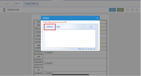 提交申请材料(《东北林业大学学生社团发起人基本情况信息表》《学生社团指导教师聘任协议》《东北林业大学社团业务指导单位确认书》、《社团章程草案》、《社团发起人未受过校纪校规处分证明》)(增加撤回功能)