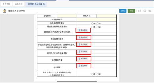 第一步:社团负责人登录办事大厅填写东北林业大学学生社团校外活动申请表单(见附件4),提交申请材料(活动策划方案和安全预案、《东北林业大学学生社团成员校外活动安全责任承诺书》、《东北林业大学学生社团校外活动家长知情同意书》、请假证明、保险凭证等)