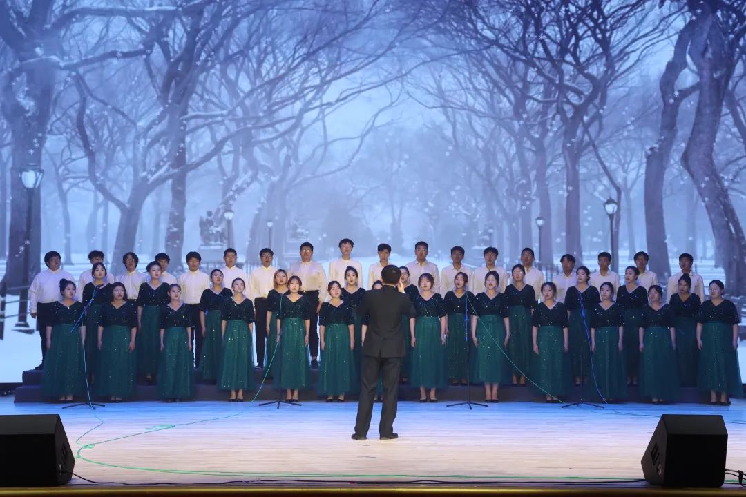 大学生艺术团舞蹈团深情演绎情景舞蹈《荒漠上的东林人》,生动诠释了60多年前投身塞罕坝的47名东林学子,誓让沙漠成绿洲的豪情壮志。大学生艺术团合唱团带来的《雪花的快乐》,动感美妙、声声入耳,为毕业生送上了美好祝福。
