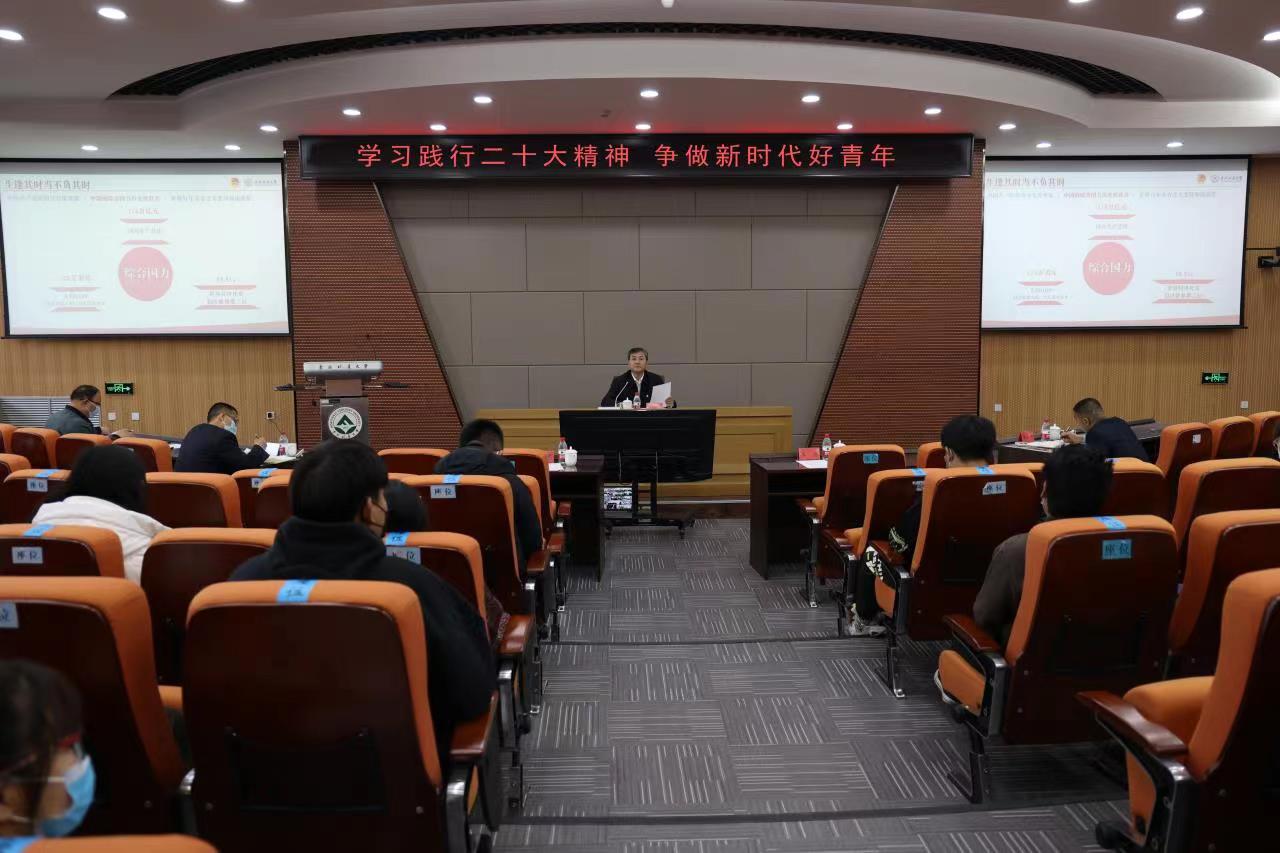 10月28日下午,中央团校马克思主义学院硕士生导师胡静在我校学习宣传贯彻习近平总书记《论党的青年工作》专题读书班(第四场...