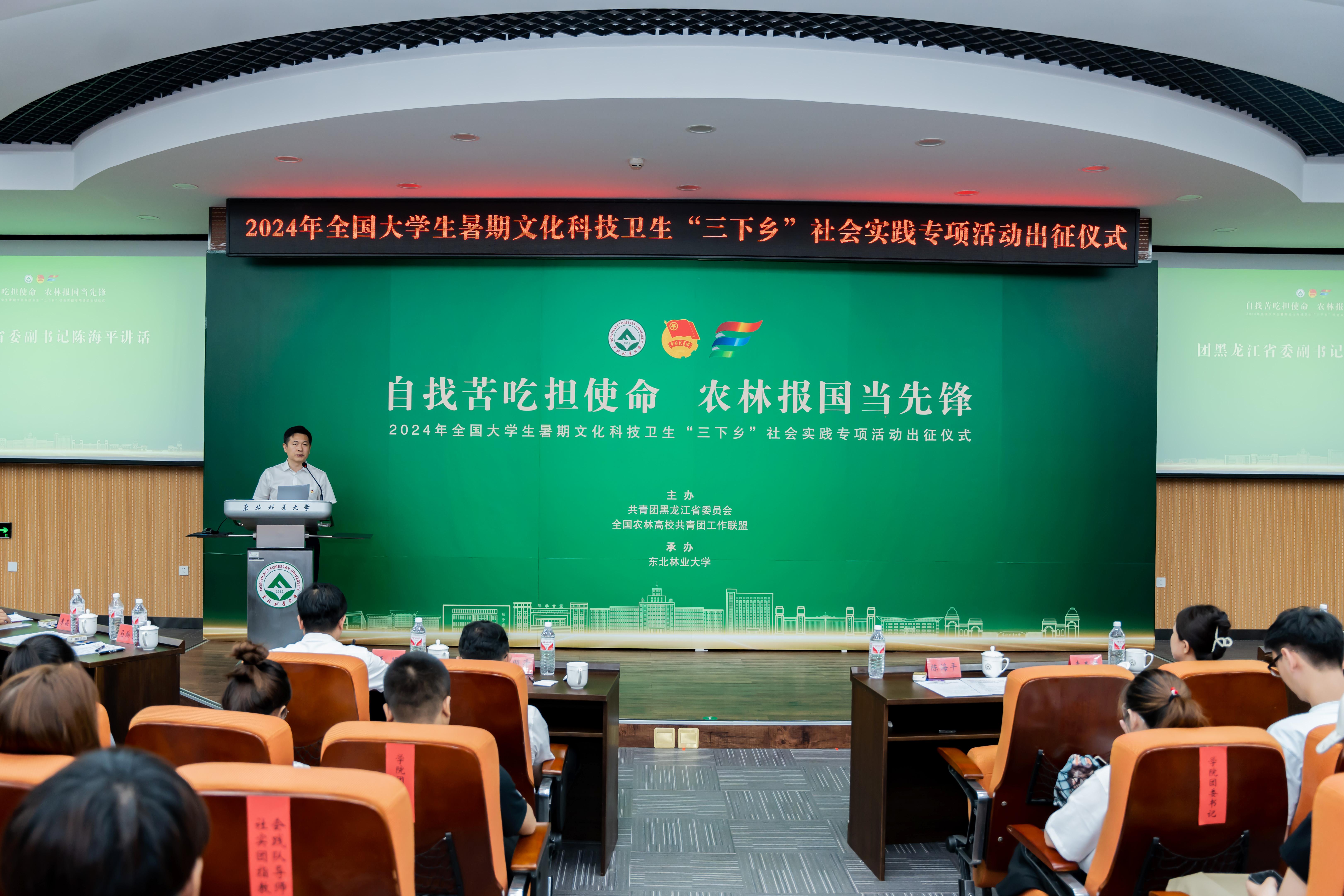 7月18日,“自找苦吃担使命 农林报国当先锋”2024年全国大学生暑期文化科技卫生“三下乡”社会实践专项活动出征仪式在我校奥...